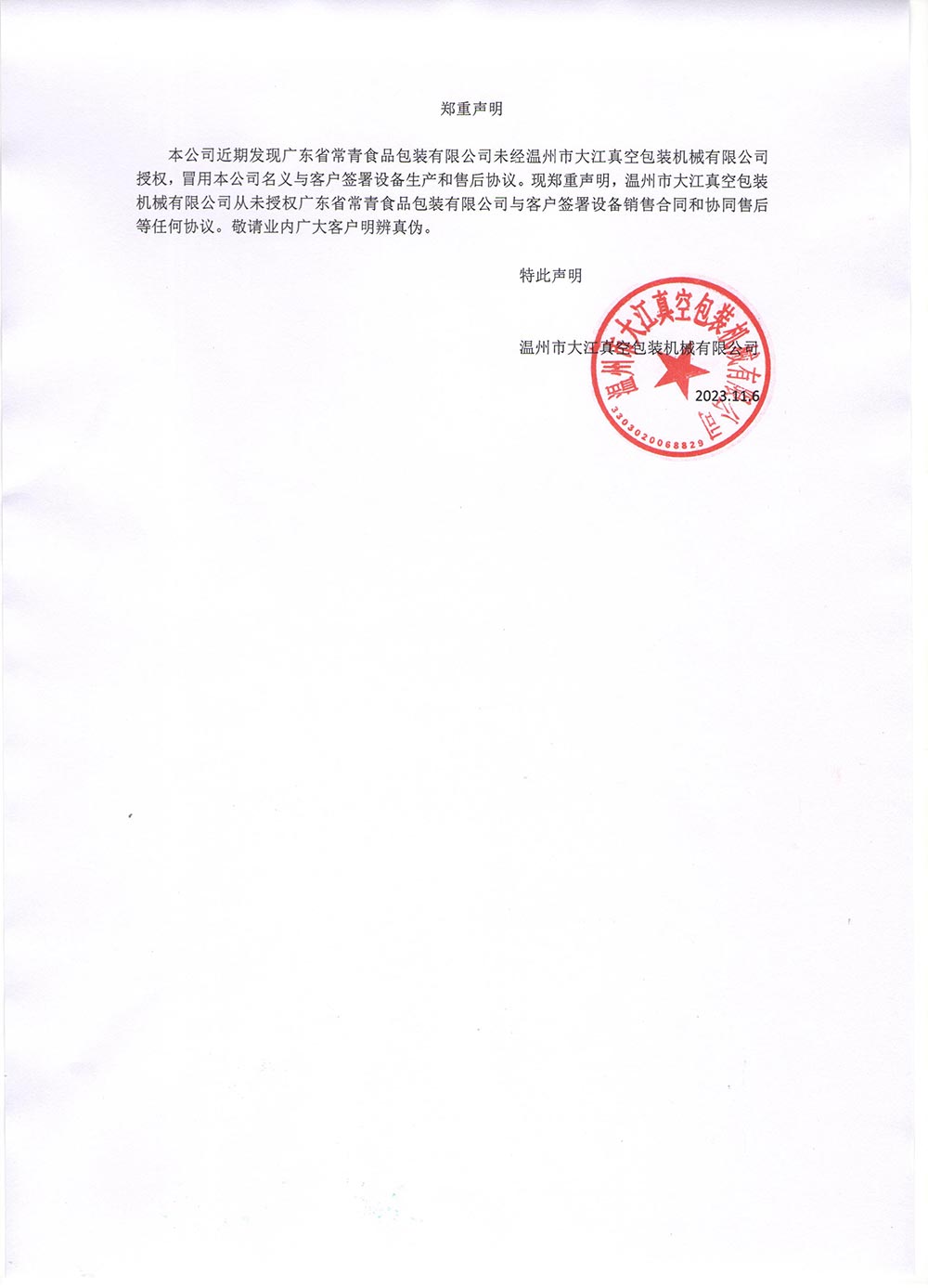 关于“大江”品牌的郑重声明2025-09-01